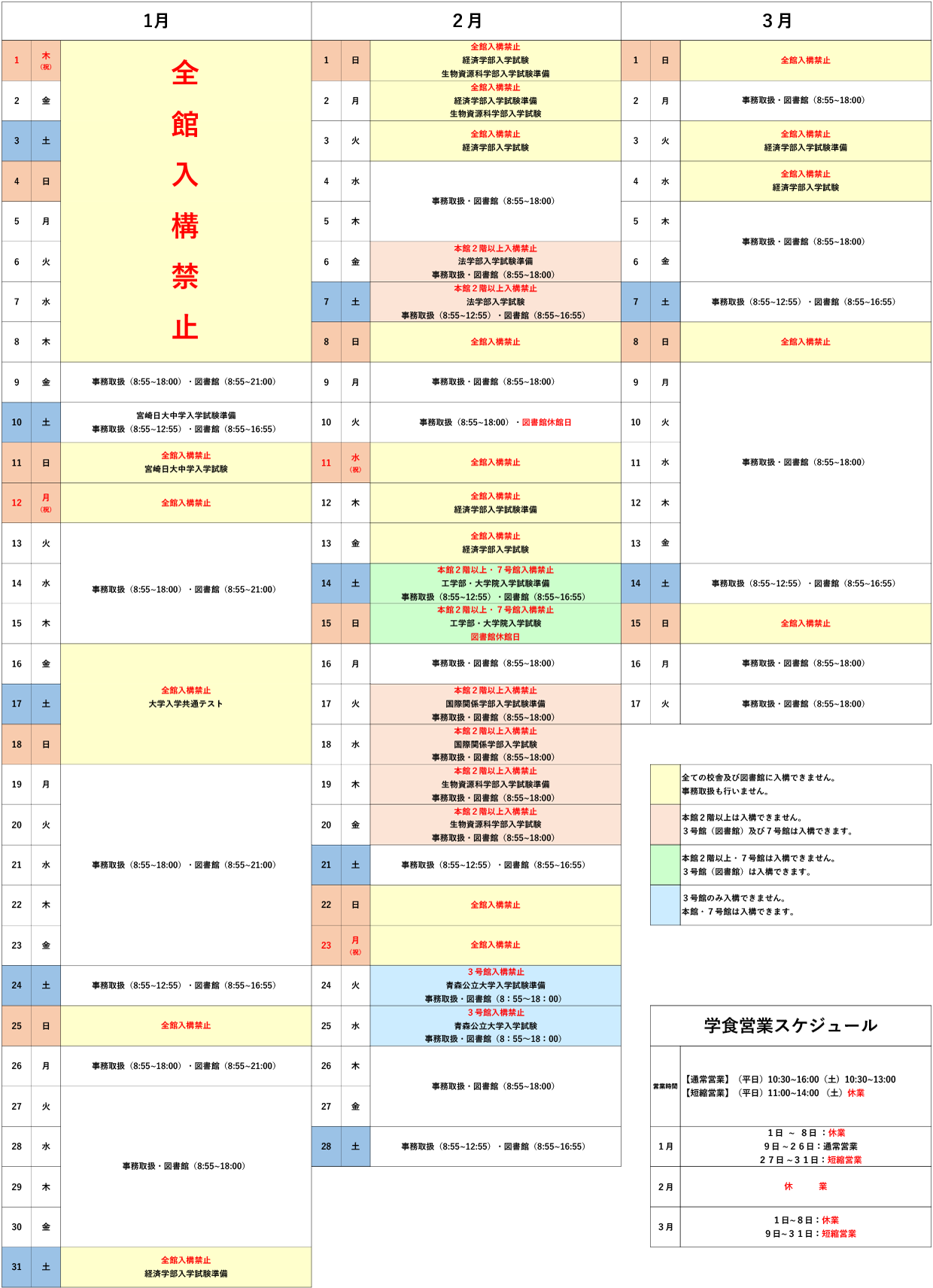 一般選抜等の入試実施に伴う窓口取扱い時間及び入構制限について