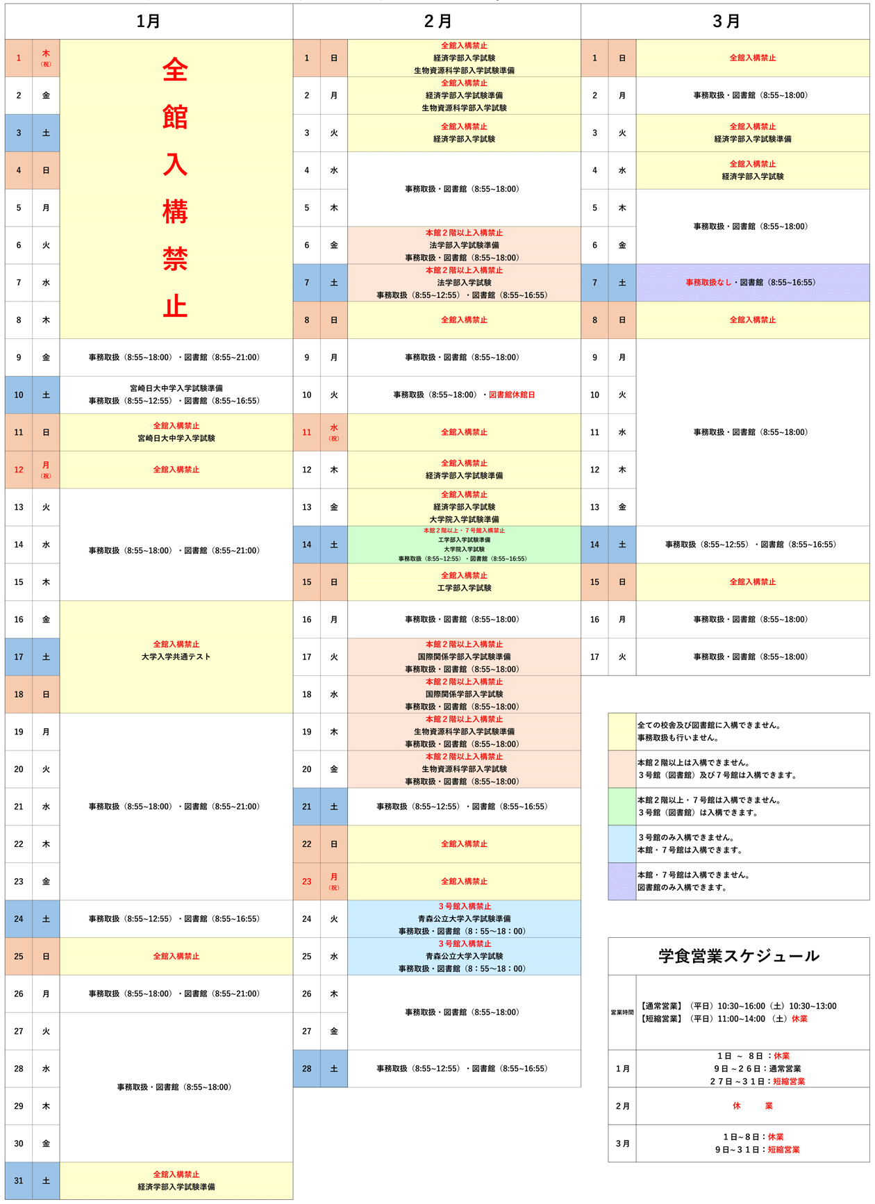 令和8年度入学試験実施に伴い、事務取扱時間及び各校舎へ入構できる日が以下のとおり変更となります。